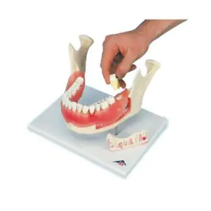 2,5-krotnie powiększony model języka, 4 części T12010 - Prezentowany model języka posiada następujące elementy, które mogą być zdemontowane: - Żuchwy do drugiego zęba trzonowego - Środkowa część języka - Model na demontowanym statywie. - Wymiary: 23x17x16