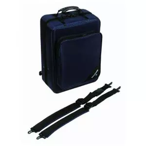 Miękki grzbiet z zamkiem błyskawicznym. Etui wewnątrz wyścielone zdejmowaną warstwą płótna z kieszeniami na instrumenty