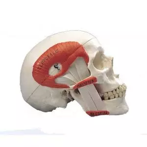 Model czaszka z otwieraną dolną szczęką to pomocne narzędzie dla dentystów, ale także wykładowców oraz studentów stomatologii. Doskonale przedstawione zostały korzenie z naczyniami krwionośnymi i nerwami. Takie elementy jak kości czaszkowe, szczeliny, otwory oraz inne struktury zostały ponumerowane. W kolorze zostały zaprezentowane szwy czaszkowe , jak również naczynia oponowe i zatoki żylne.