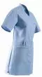Kobieca tunika 3/4, TUY - Odwracalny kołnierz - Biała, lniana etykietka - Zapięcie zatrzaskowe z przodu - Krótkie rękawy - 1 kieszeń na klatce piersiowej