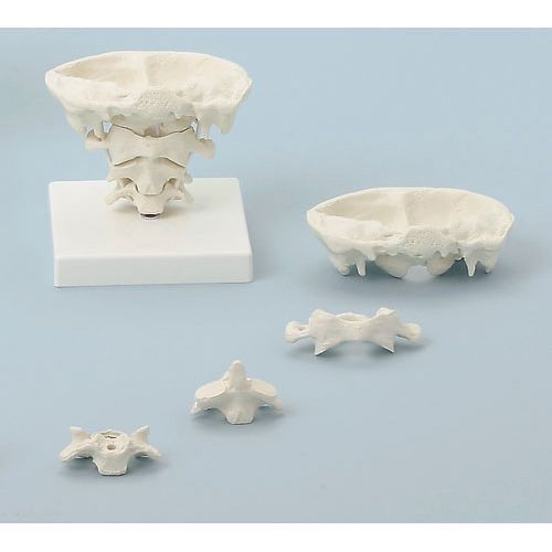 Model naturalnej wielkości. Unikalny model w skali światowej. W modelu tym ruch w górnej części karku może być zademonstrowany w sposób realistyczny i anatomicznie poprawy. Wszystkie możliwe ruchy w stawie szczytowo-potylicznym oraz stawie szczytowo-obrotowym mogą być prezentowane w sposób godny podziwu. Model dostarczany na podstawie.