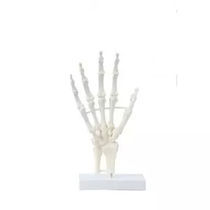 Model szkieletu prawej nogi z kością biodrową - Model ten jest cennym narzędziem do szczegółowego poznawania anatomicznej budowy ludzkiej nogi. - Poszczególne kości szkieletu połączone są ze sobą drutem, dzięki czemu są nieznacznie elastyczne