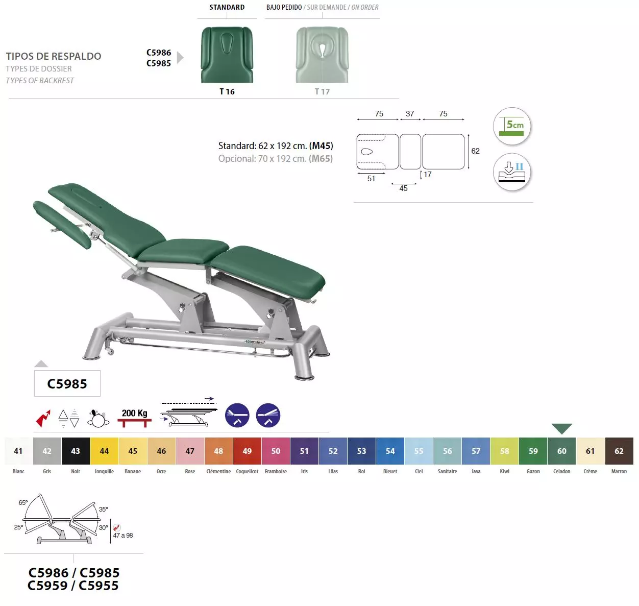 Girodmedical vous propose en exclusivité la nouvelle Table de massage électrique 3 plans Ecopostural C5985, une table de massage disposant de 3 plans et 7 sections.