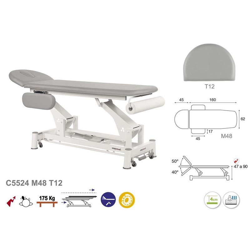 Table de massage électrique avec barre périphérique Ecopostural C5524 avec accoudoirs- Variation de la hauteur : 47-90 cm - Dimensions standard : Standard: 62 x 207 cm. (M48) - Têtière standard T10: Têtière avec cavité visage rectangulaire et bouchon inclus - Commande électrique par barre périphérique - Jeu d’accoudoirs rabattables (fixes) - Charge maximale admissible: 175 Kg - PRODUIT CE - Garantie : 3 ans