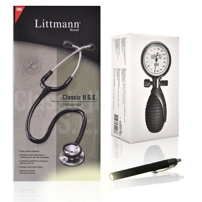 Zestaw diagnostyczny Littmann Girodmedical Czarny - Stetoskop Littmann Classic II SE Bordo - Ciśnieniomierz Pulse Plus - Lampka PENLED Czarna - 3 lata gwarancji
